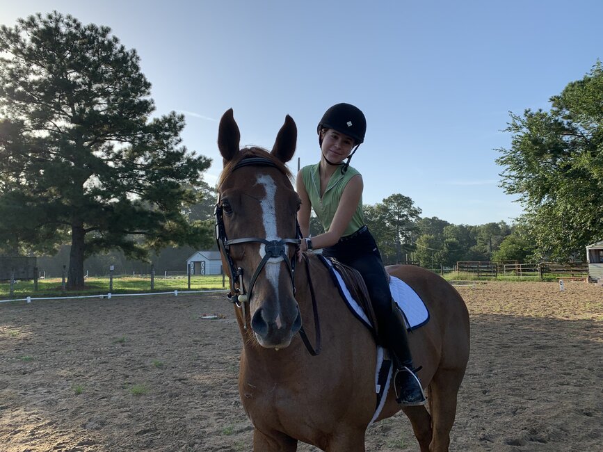 Ashby is 14 years old and has been riding with Sandy River for nine years. She recently came to own her first horse, a six year old named Gunner, and has done a beautiful job bringing him along. Ashby's favorite thing to do with Gunner is jump everything they can.